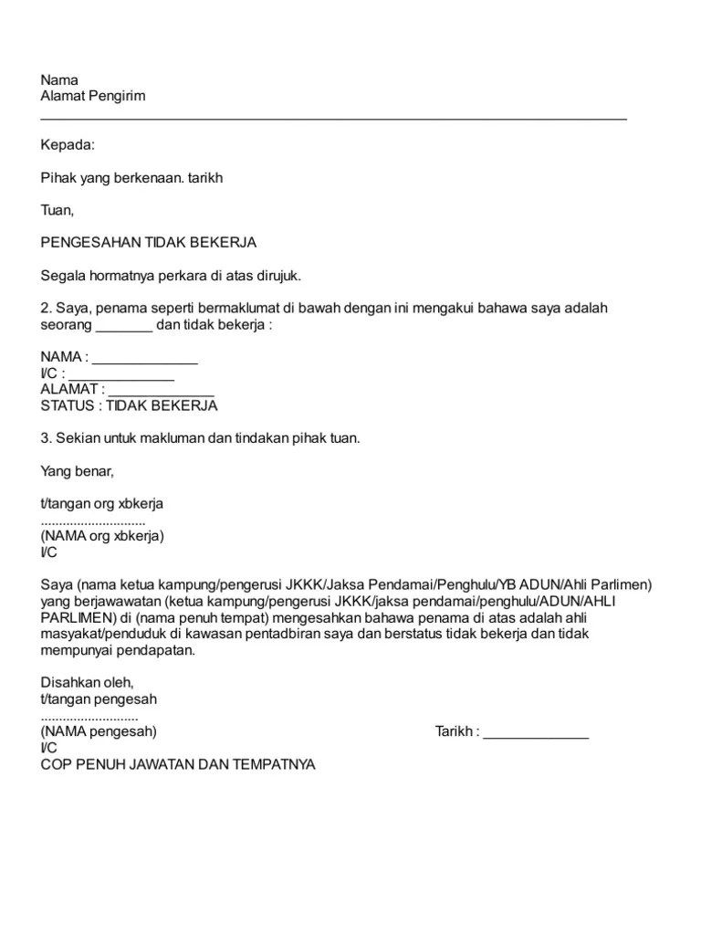 Untuk dilengkapkan oleh penjaga yang tidak mempunyai penyata gaji / penyata pencen). Contoh surat pengesahan pendapatan ini boleh dibuat dalam bentuk format ataupun boleh juga menggunakan surat rasmi. Contoh pengesahan permohonan sijil digital individu token jawapan. Contoh surat rasmi pengesahan, surat rasmi pengesahan pendapatan, surat rasmi pengesahan jawatan, surat rasmi pengesahan majikan, surat rasm. For more information and source see on this link. Pengesahan dari ketua kampung / ketua penduduk / pesuruhjaya sumpah. Bagi individu yang tidak mempunyai penyata . Contoh surat rasmi pengesahan pendapatan bekerja sendiri cute766. Contoh surat pengesahan pendapatan ini boleh dibuat dalam bentuk format ataupun boleh juga menggunakan surat rasmi. Untuk pengetahuan semua, surat pengesahan pendapatan ialah merupakan sebuah surat rasmi yang mengesahkan individu yang tidak mempunyai gaji . Contoh surat rasmi pengesahan pendapatan. (surat ini diisi dan dilengkapkan ibu/bapa atau penjaga yang tidak mempunyai bukti pendapatan). Perincian gaji orang tua dari .